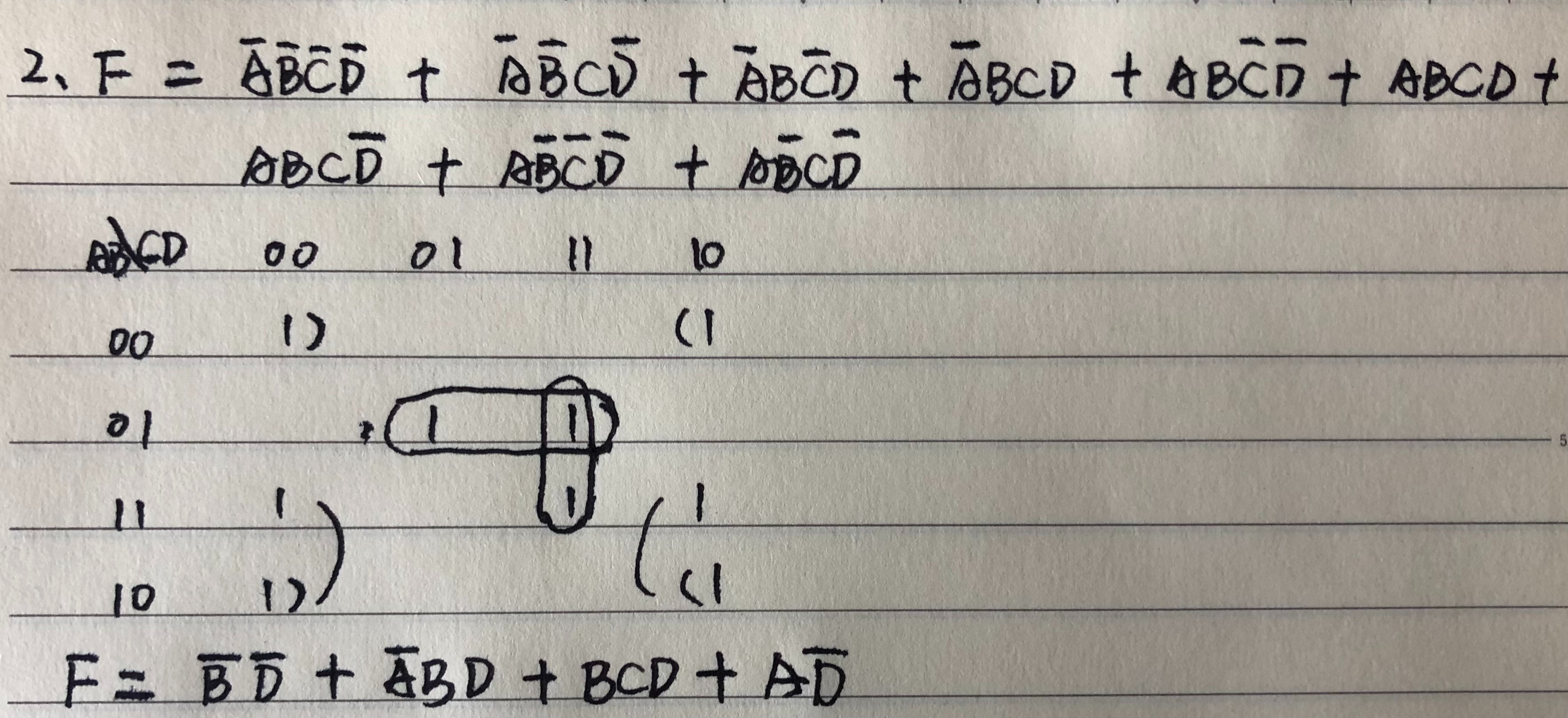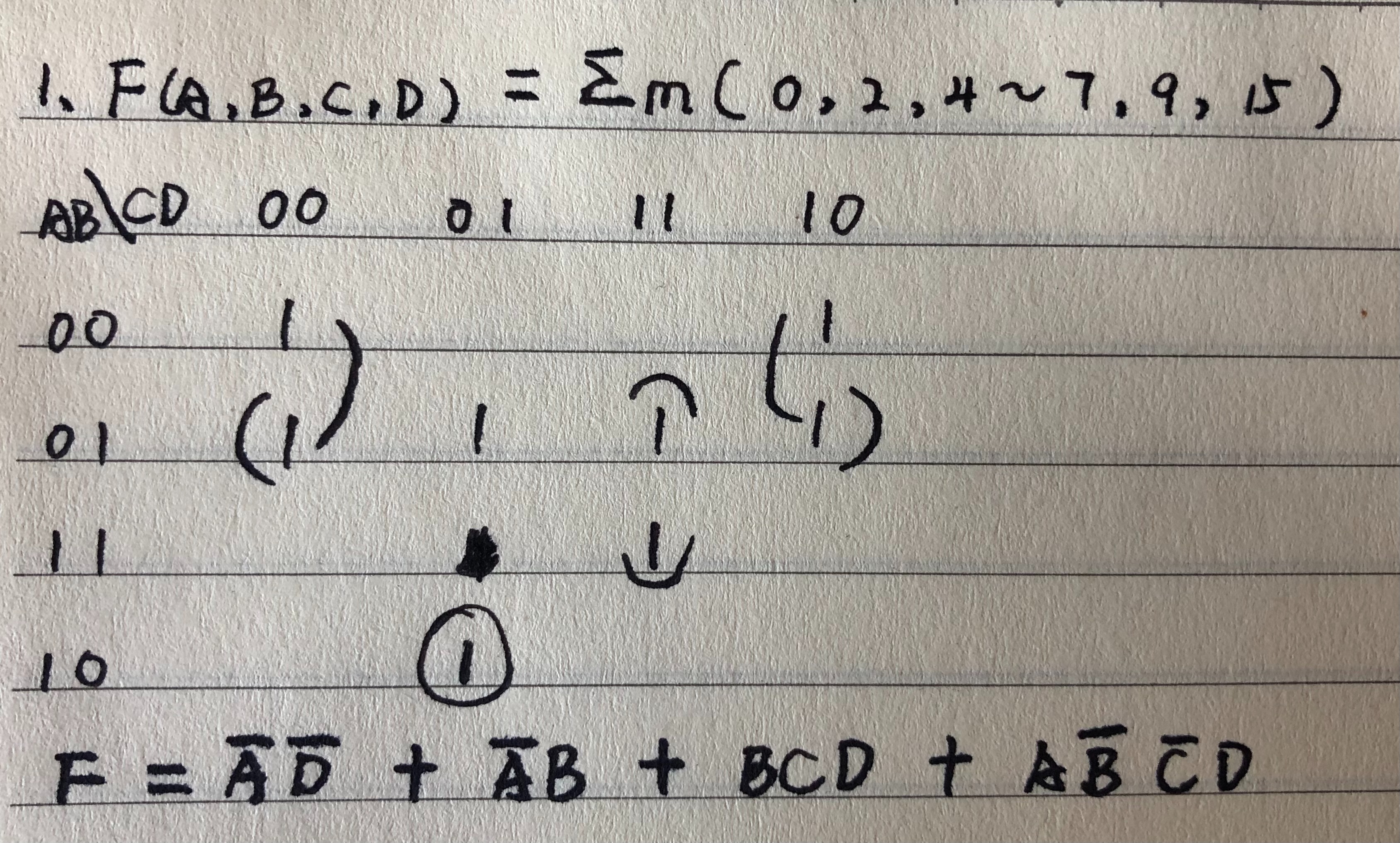 卡诺图只考虑输出 F = 1 的情况,根据 F = 1 画出卡诺图表格。