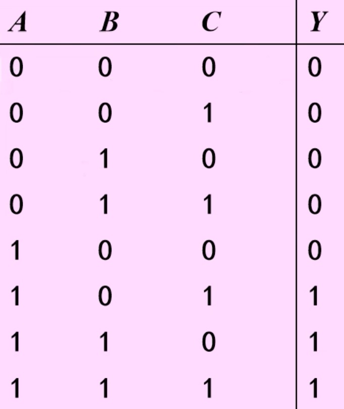 - 真值表的记录数量等于 2 的输入变量个数次幂。比如有 3 个输入变量,那么真值表共有 8 条记录,这 8 条记录用 0 ~ 7 的二进制表示。