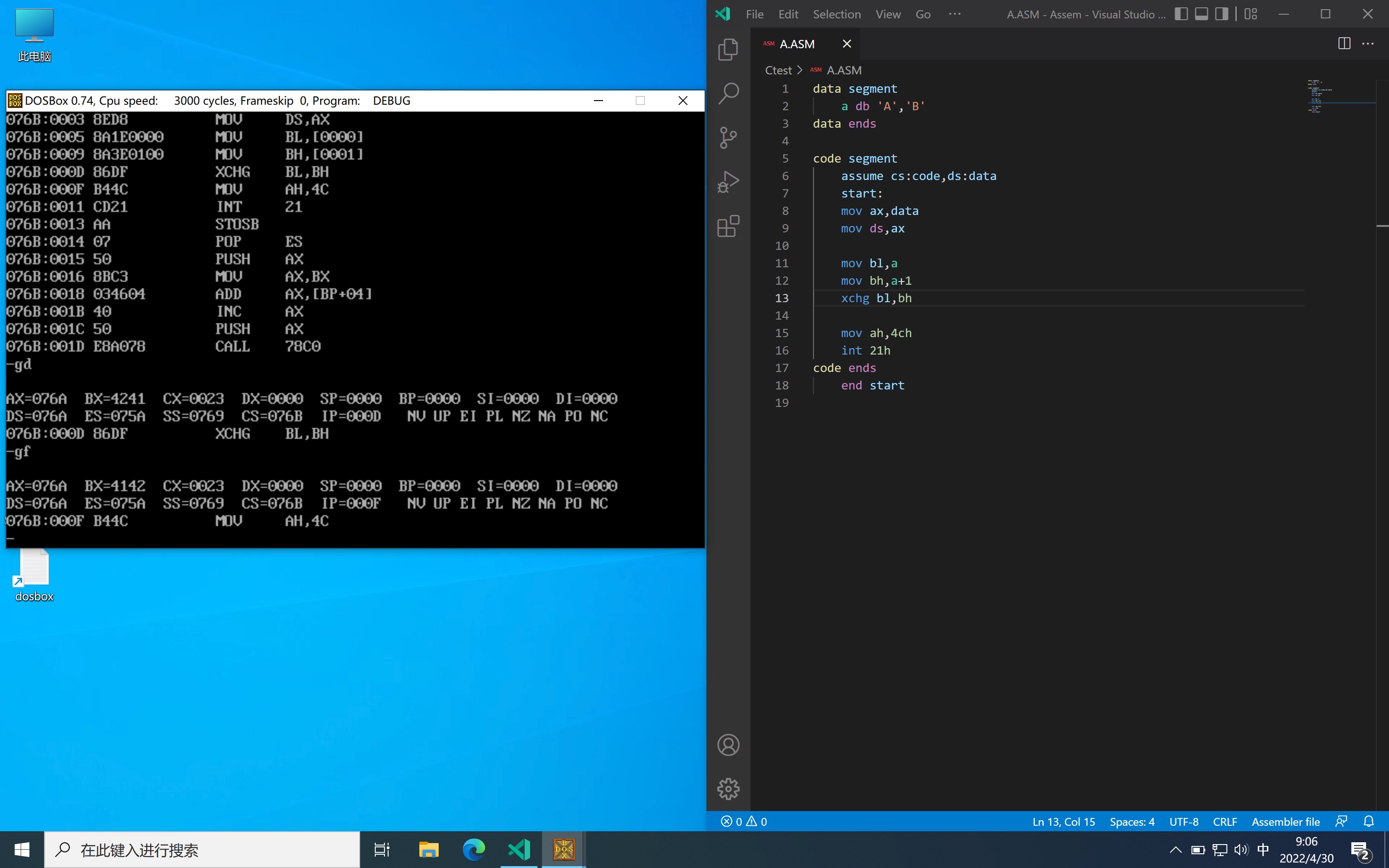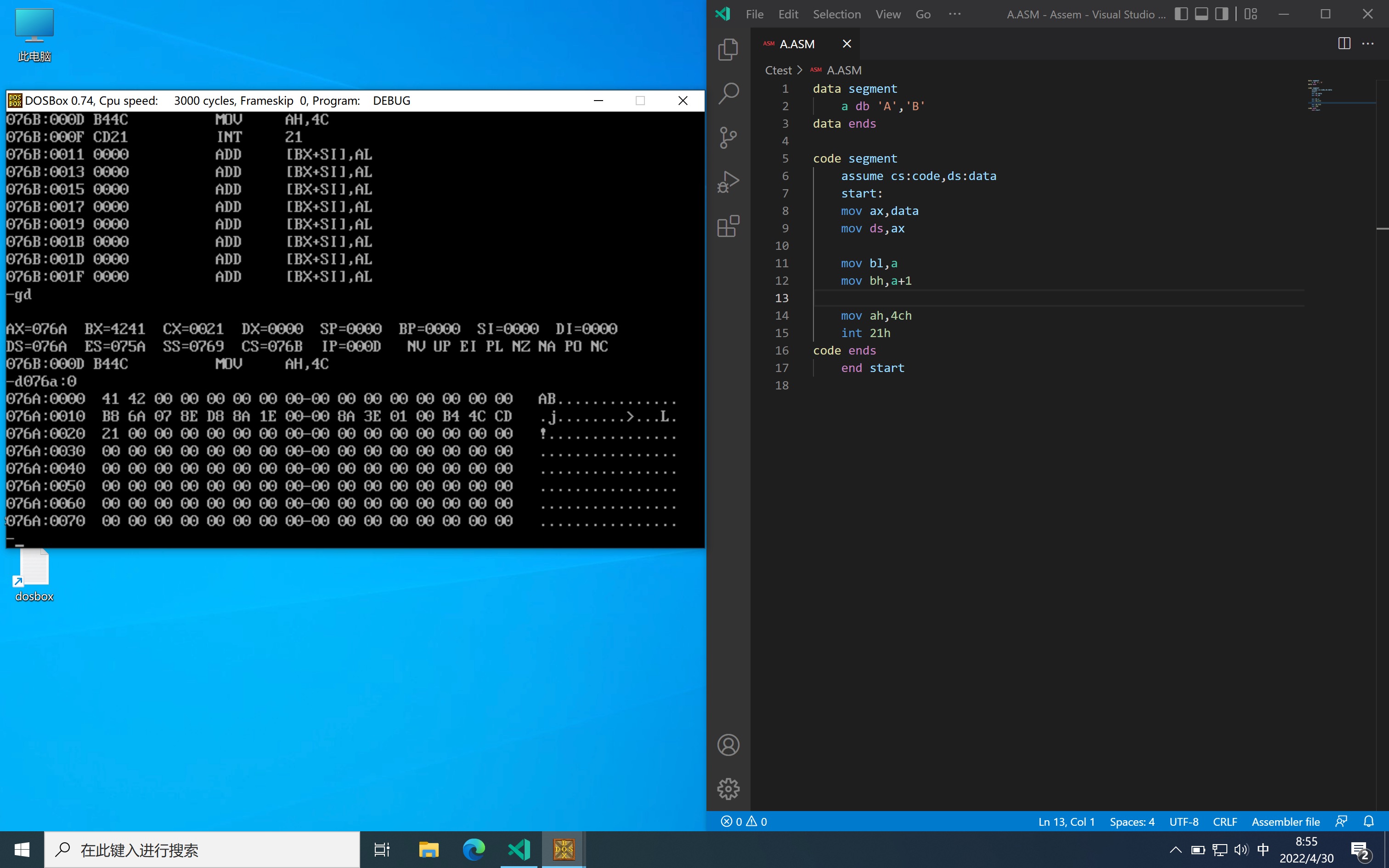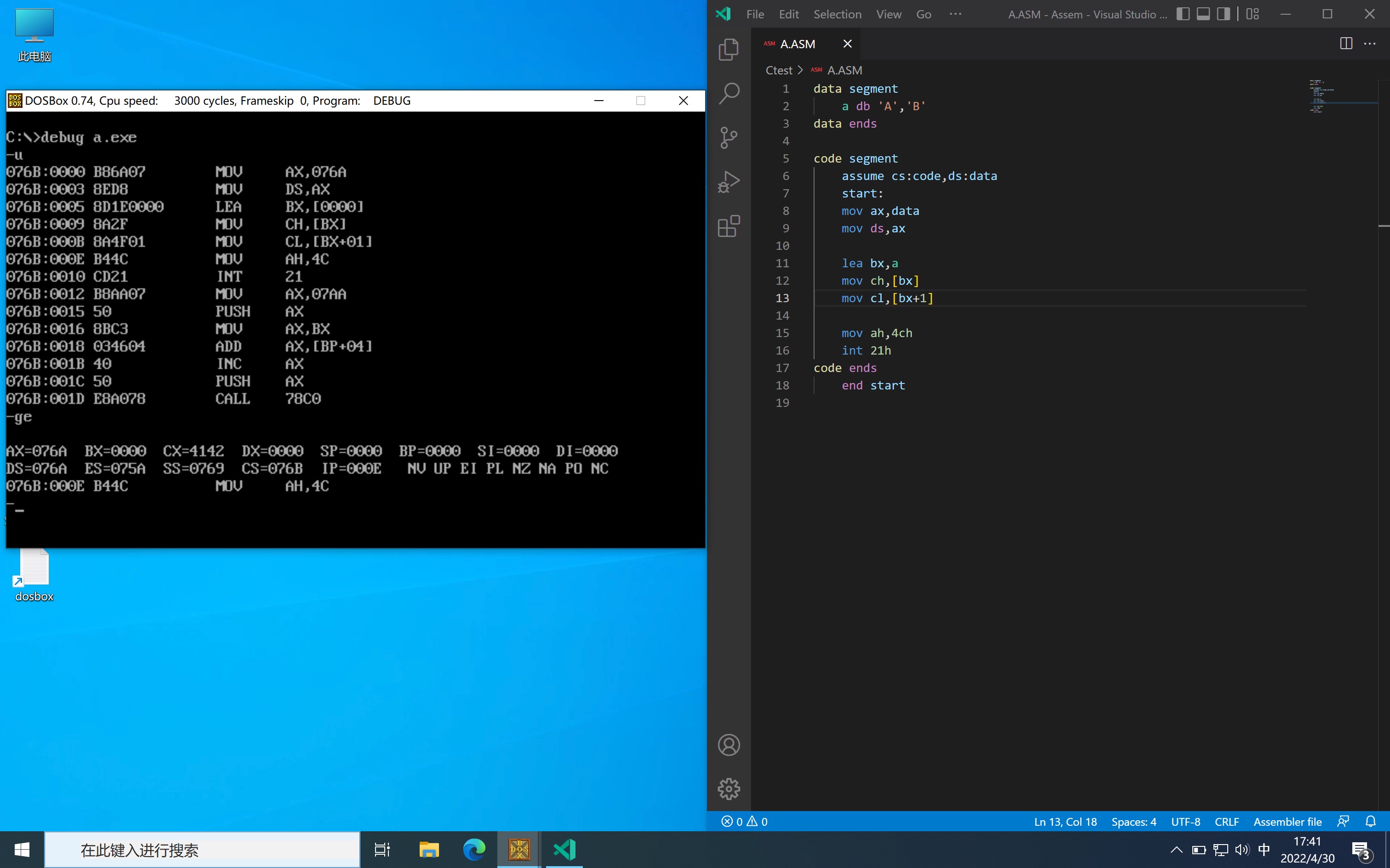 - lea bx,a 这句话的意思是将 a 的地址传到 bx 中,类似于指针的概念。