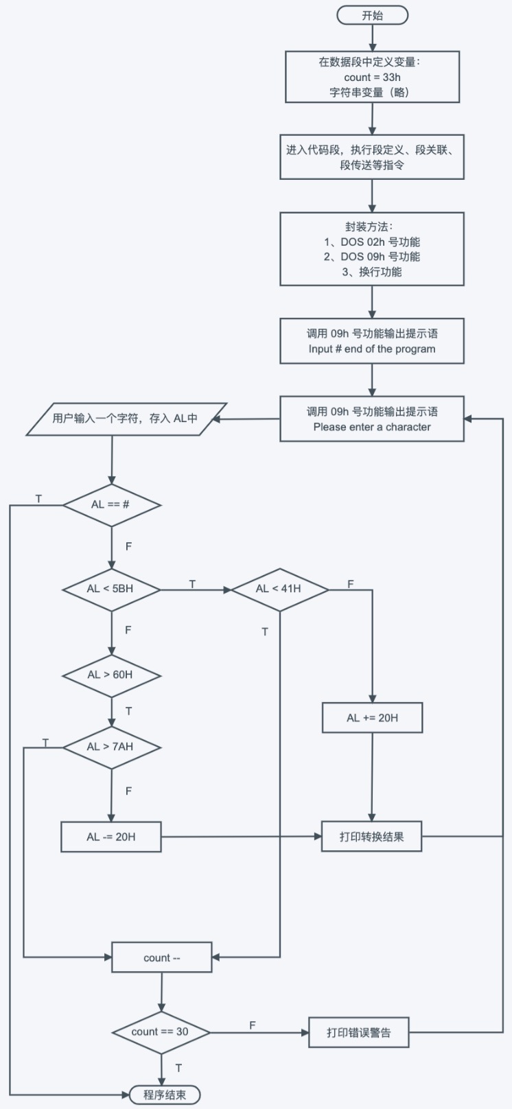 - 将需要转换的值放到 BL 寄存器中(高阶版本:从键盘输入)