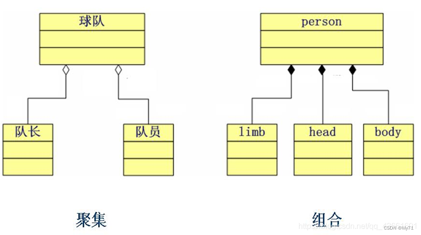 - 体现了一种层次结构,整体类位于部分类的上层,多个部分类处于并列的层次。