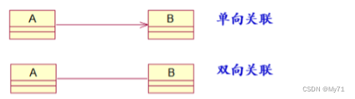概念:关联用来表示来表示两个(或多个)类的对象之间的结构关系,它在代码中表现为一个类以属性的形式包含对另一个类的一个或多个对象的引用。