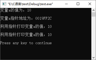 printf("利用指针打印变量a的值:%d\n\n",*p_a);