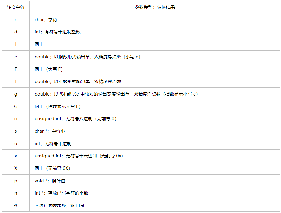 printf()printf函数是一个标准库函数,它的函数原型在头文件“stdio.h”中。printf(“格式控制字符串”, 输出表列)。其中格式控制字符串用于指定输出格式。格式控制串可由格式字符串和非格式字符串两种组成。格式字符串是以%开头的字符串,在%后面跟有各种格式字符,以说明输出数据的类型、形式、长度、小数位数等。