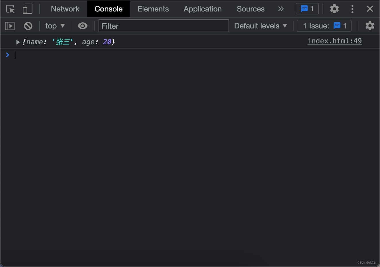 let name = '张三',age = 20; let stu = { name,age }; console.log(stu);