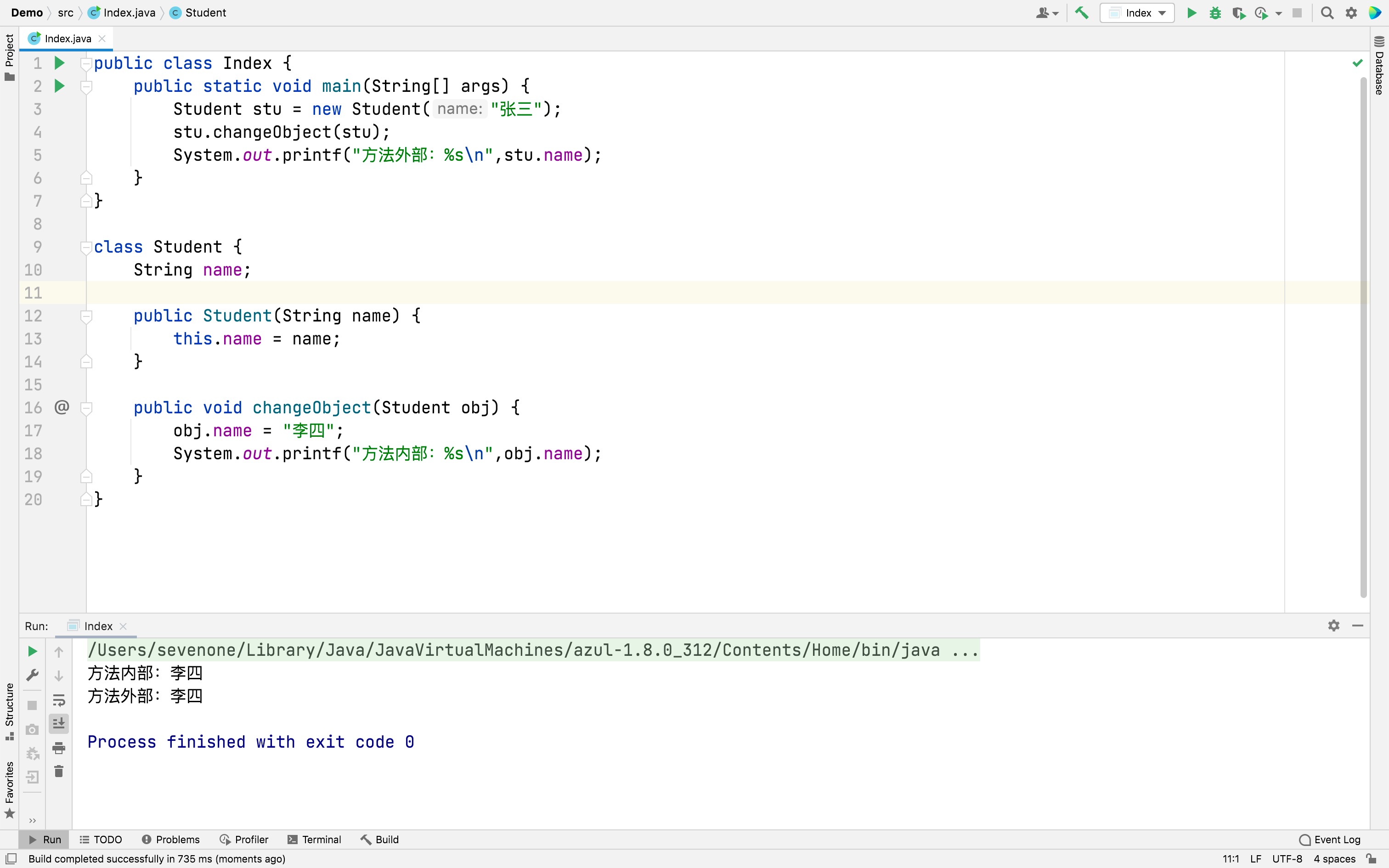 - 在 Java 中,方法的所有参数都是 “值传递”,也就是说,方法外部向方法内传参时,传递的是原数据的副本。这样做的好处是无论方法内不如何改变参数的值,方法外部的数据是不受影响的,引用类型除外。