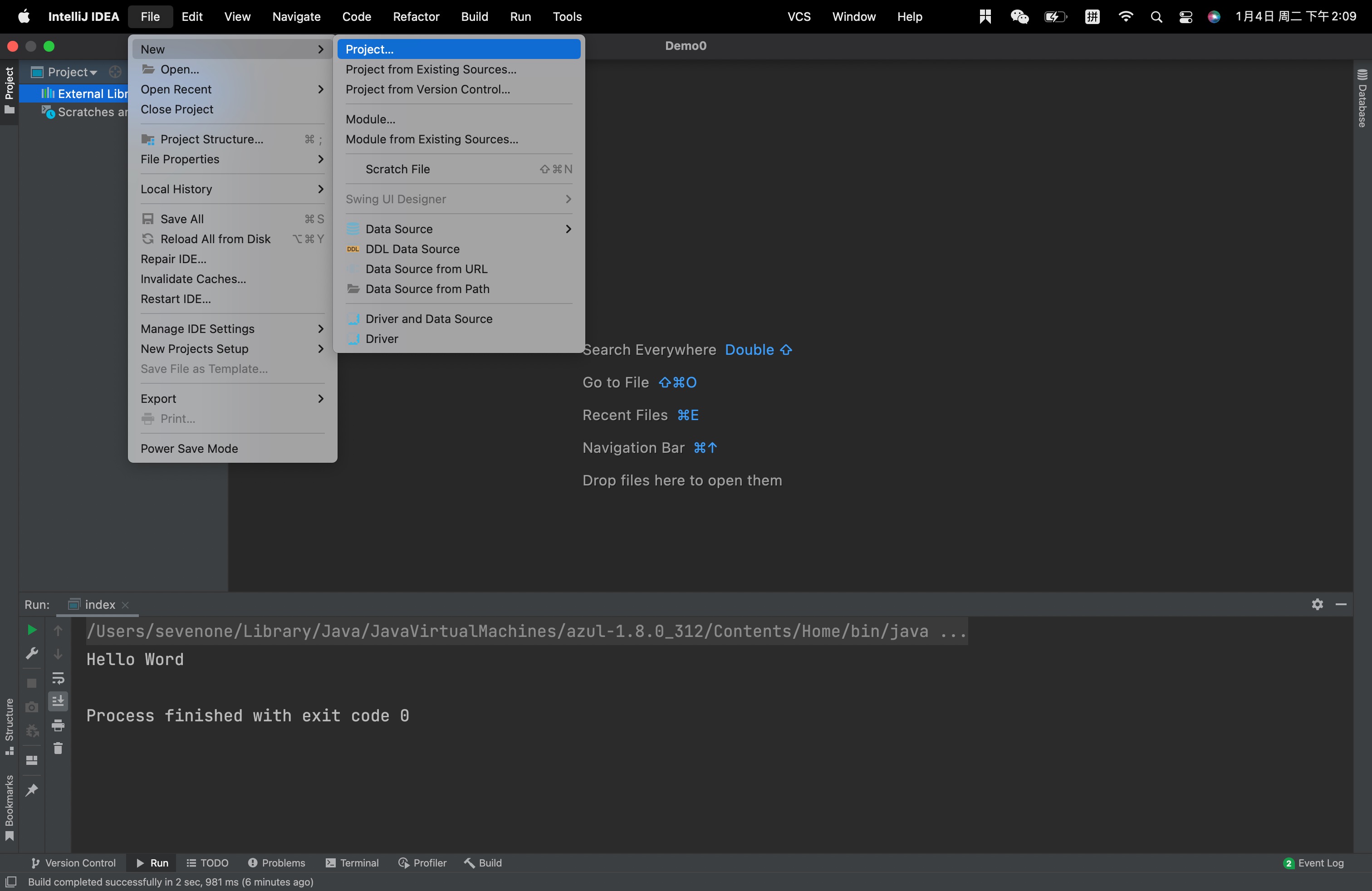 第一步在电脑上打开 ide,点击 File -> New -> Project。