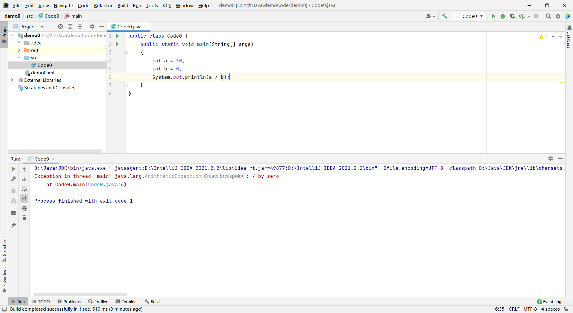 在程序中,当我们将除数设为 0 时,程序会报错,我们利用这一点验证一下短路与和短路或。