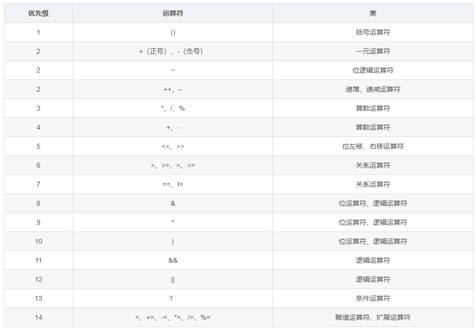 运算符的优先级