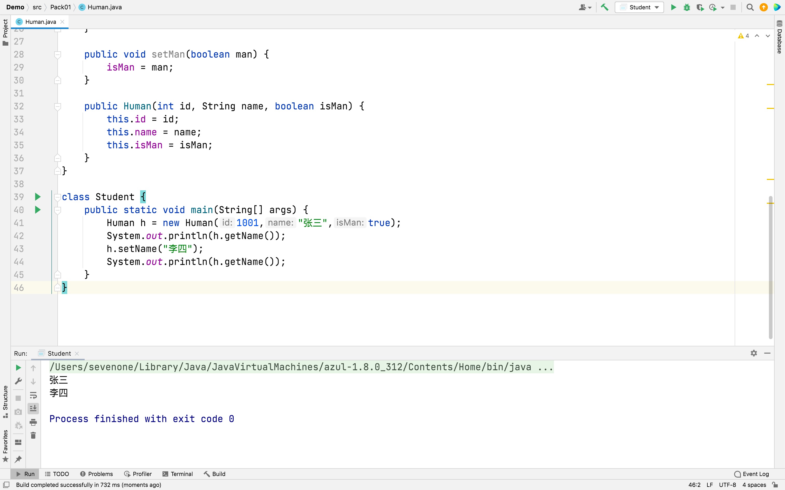 为每一个属性提供 get 和 set 方法,其他类/对象通过 get 获取值,通过 set 设置值。