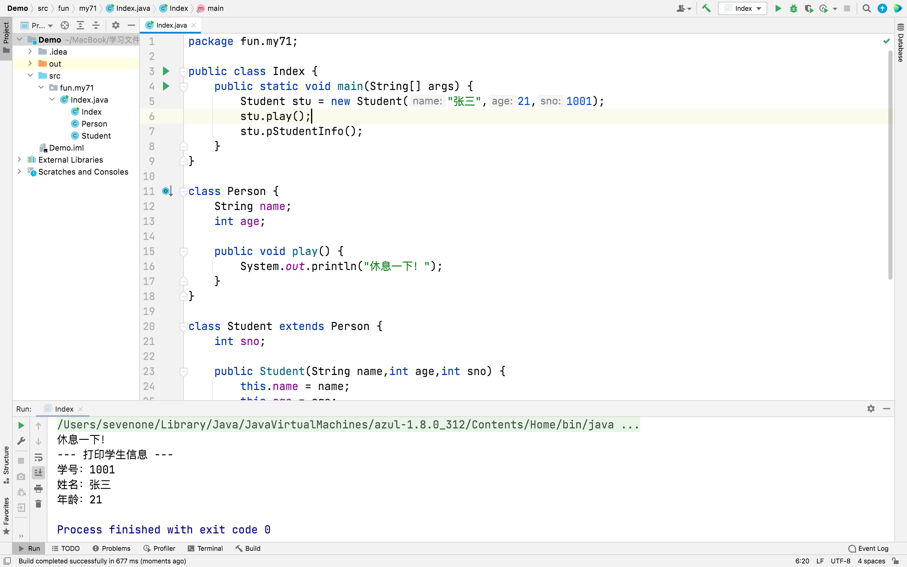 - 定义一个继承人类的学生类,属性(name,age,sno)方法(pStudentInfo)