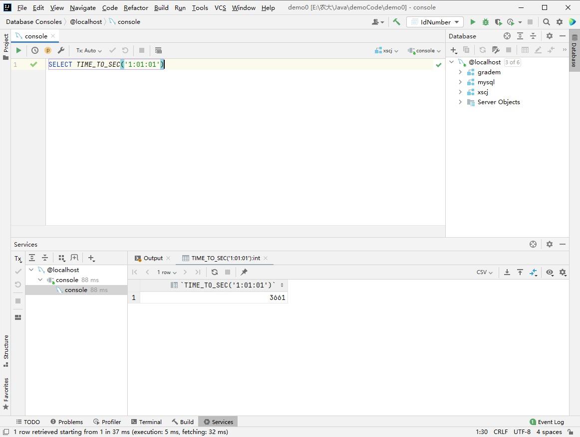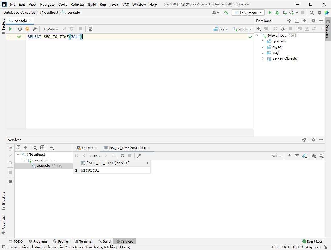 SQLSELECT SEC_TO_TIME(3661)运行结果