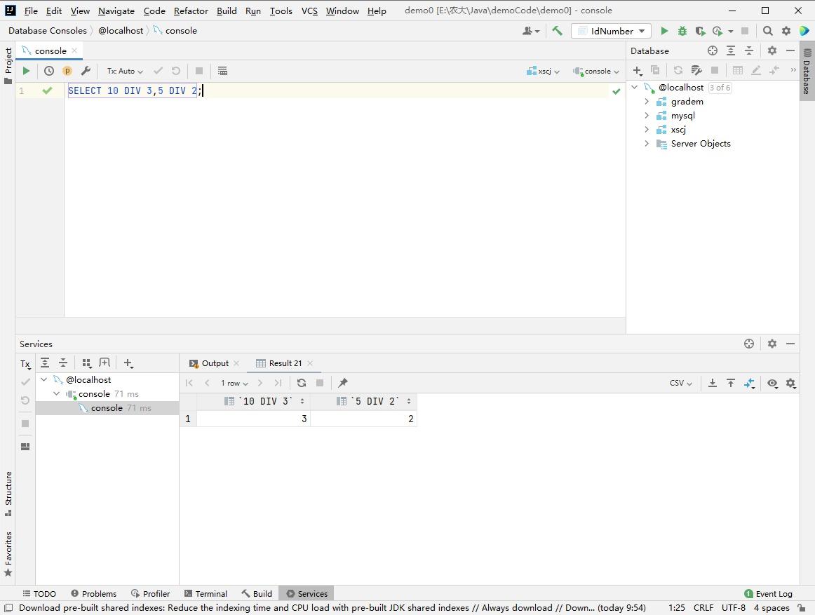 SQLSELECT 10 DIV 3,5 DIV 2;运行结果