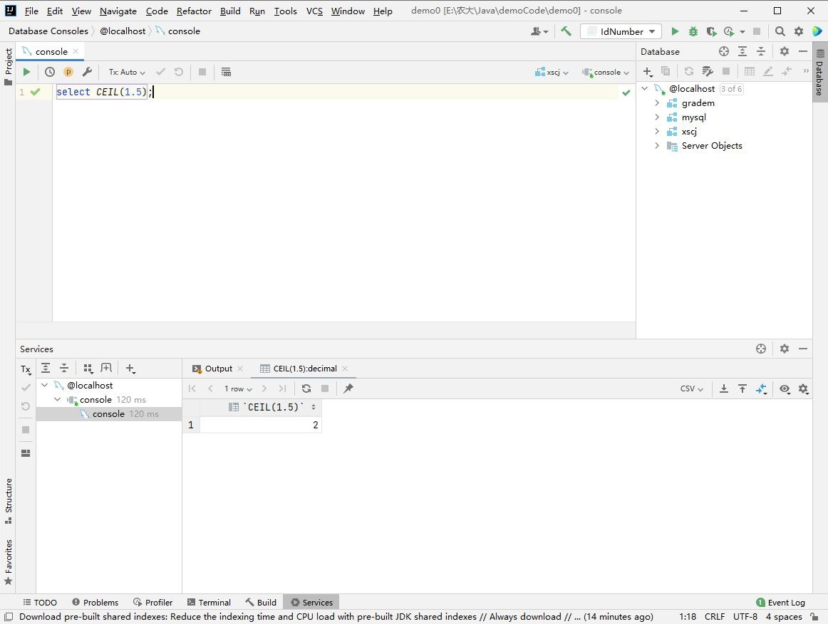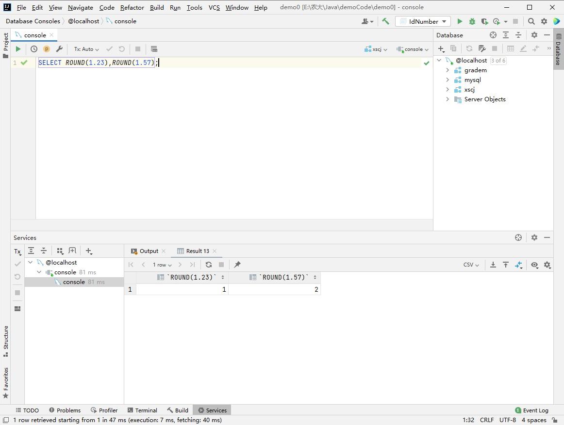 SQLSELECT ROUND(1.23),ROUND(1.57);运行结果
