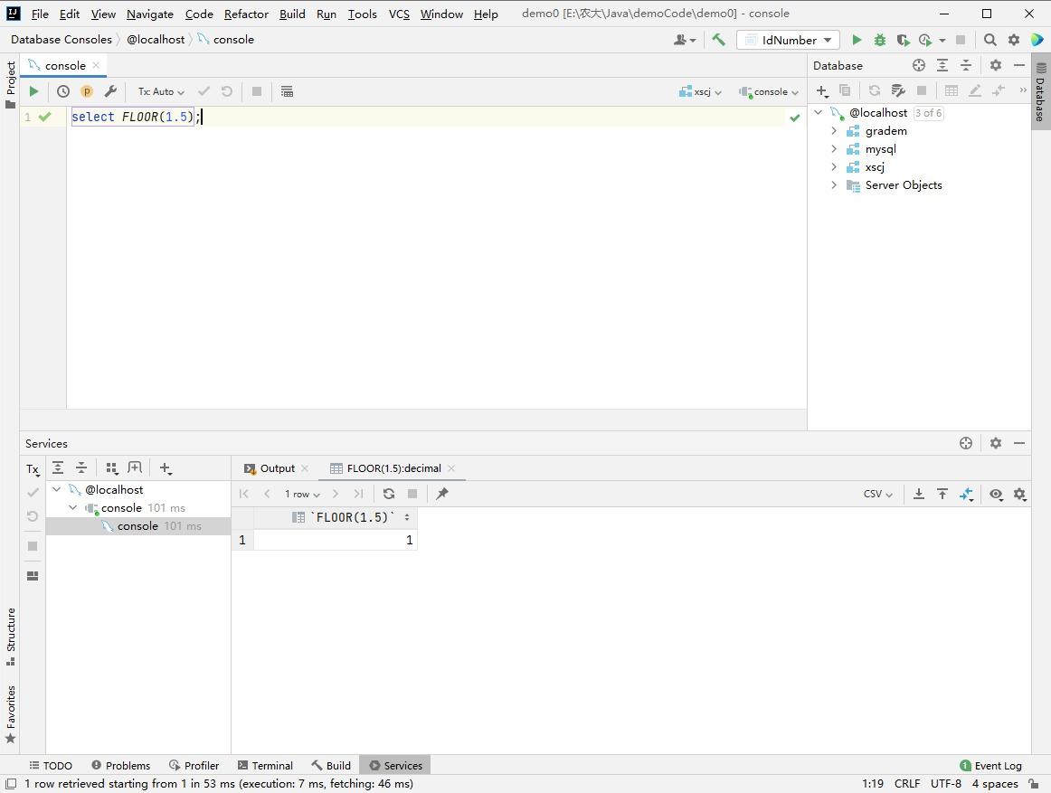 SQLSELECT MOD(10,3),MOD(10,5);运行结果