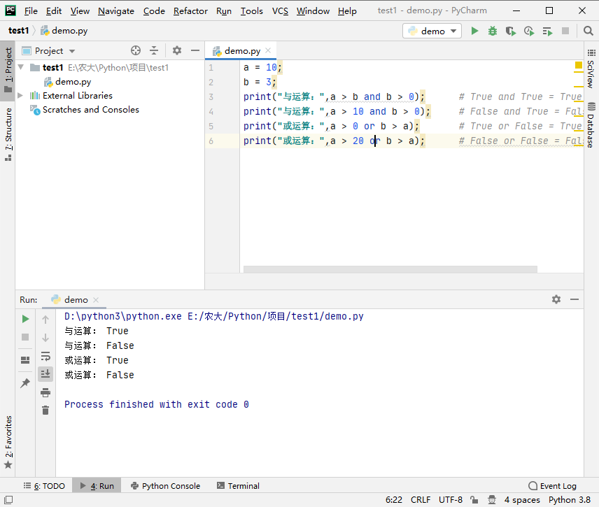 and:与运算,一假为假,全真为真。所有条件中只要有一个值为 False 那么最后的运行结果为 False;所有条件都为真,则运行结果为 True