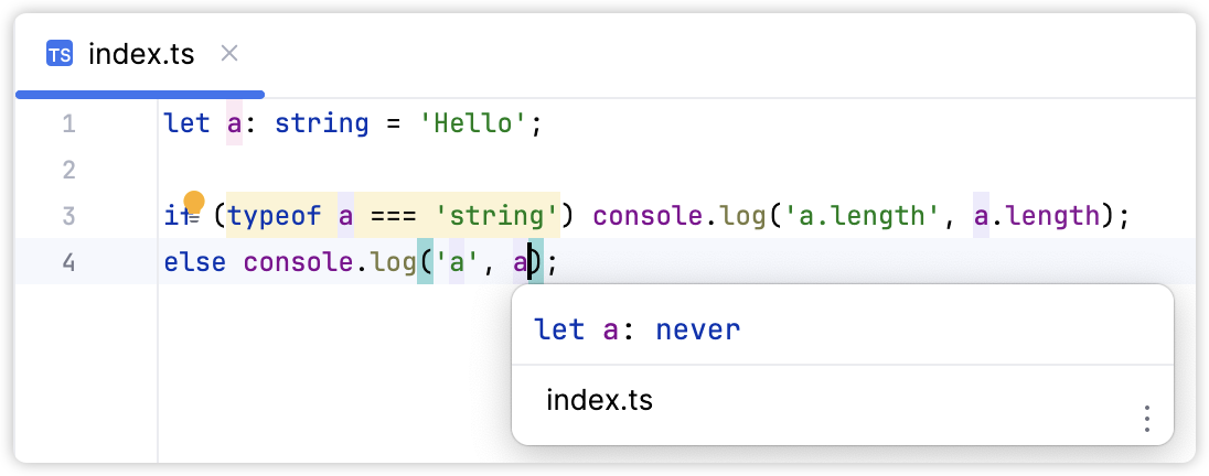 never来定义一个变量,没有任何意义。 never一般是由TS推断出来的。