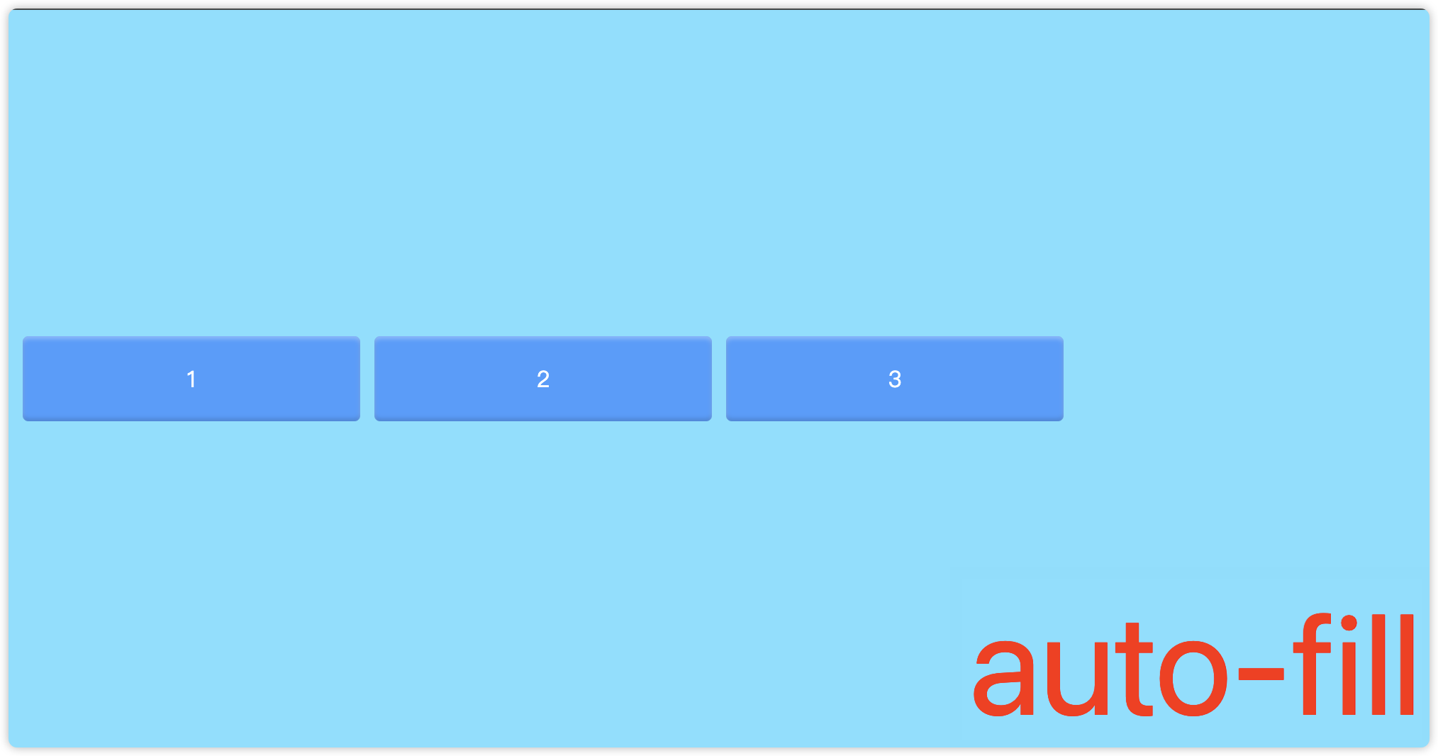 auto-fill表示尽可能多的显示列,也可以设置为auto-fit,二者区别在于直接子元素在单行中的显示方式,具体看下图。 - 参数二:
