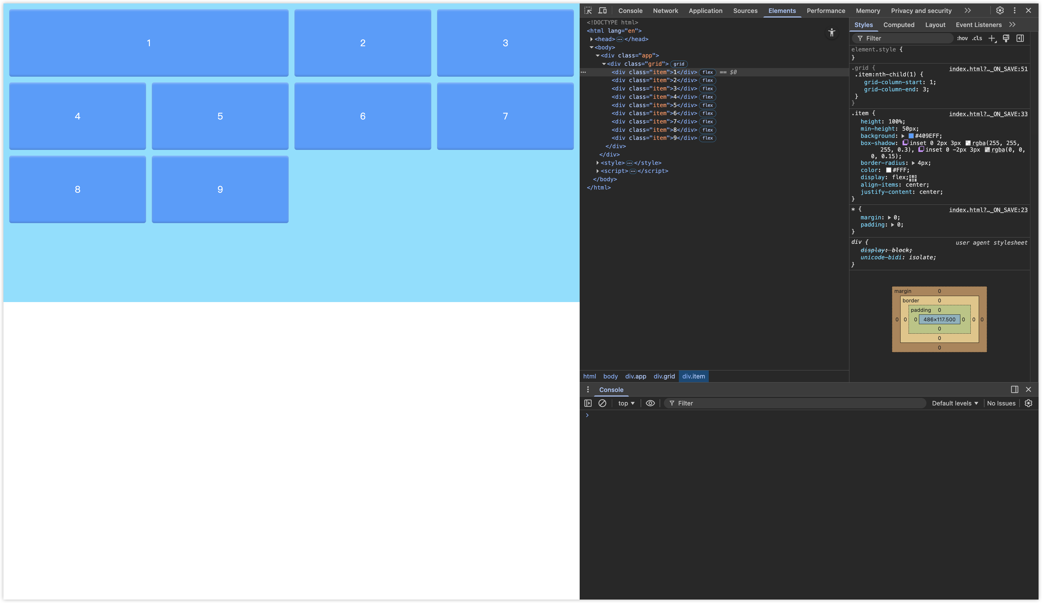 <div class="item">9</div>